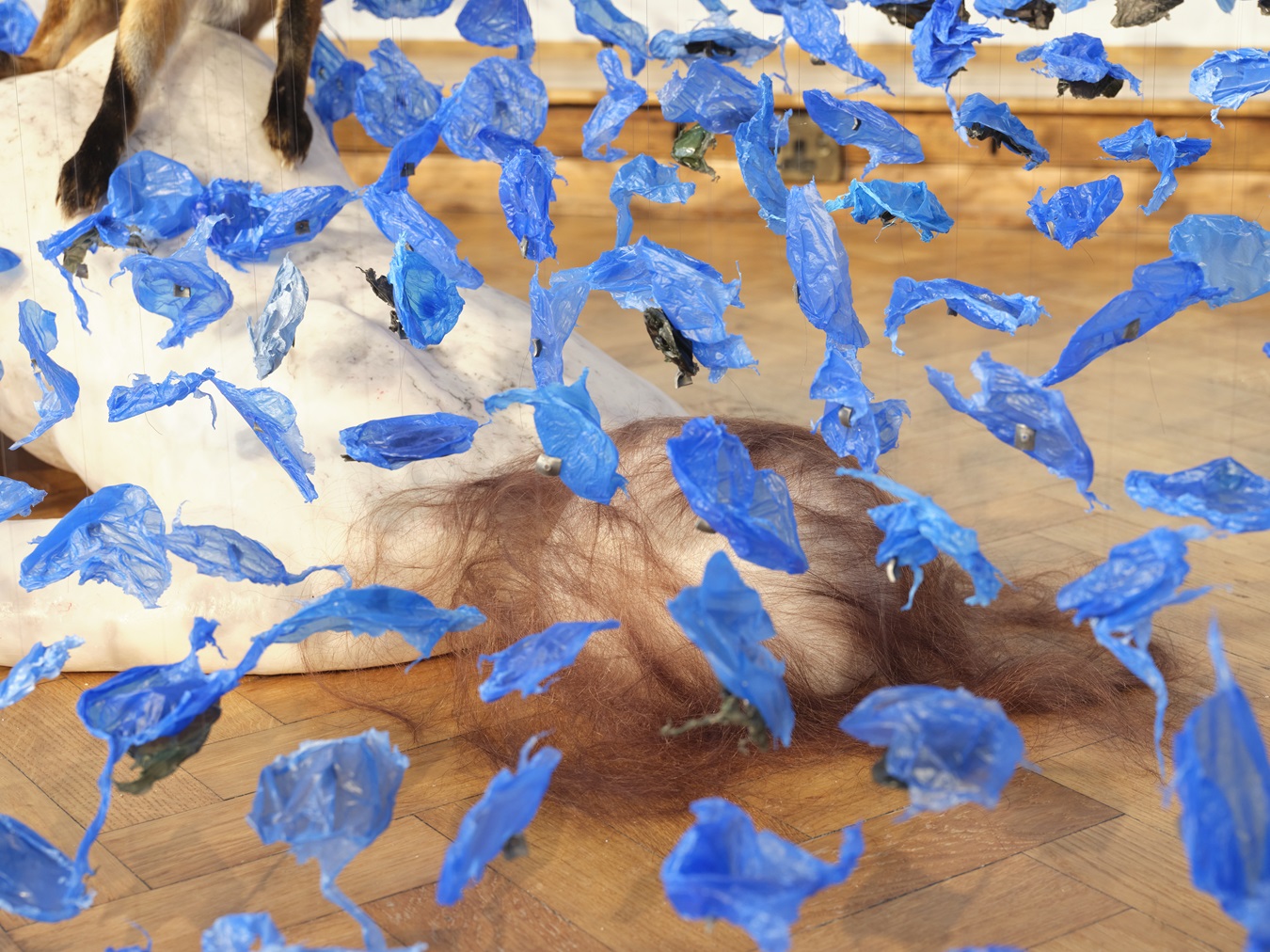 Claire Morgan’s work in sculpture, drawing and painting raises fundamental questions about the role of humans and their relationship to nature. Complex three-dimensional forms made from artificial and natural materials are a frequently recurring motif. The creation of her pieces are intricate, time consuming and extremely skilled, using taxidermy, waste materials, dead animals, sculptural wax figures and human hair. Her detailed installations deepen the viewing experience through the quality and delicacy of the work, so that audiences can see something unique, something beautiful, something which inspires new understanding of the possibilities of the art form. She aims to immerse audiences into her artworks, creating an experiential exchange.